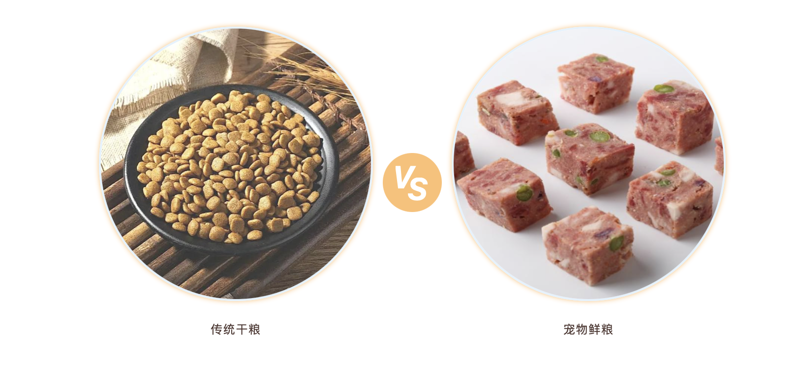 傳統干糧和寵物鮮糧的直觀對比